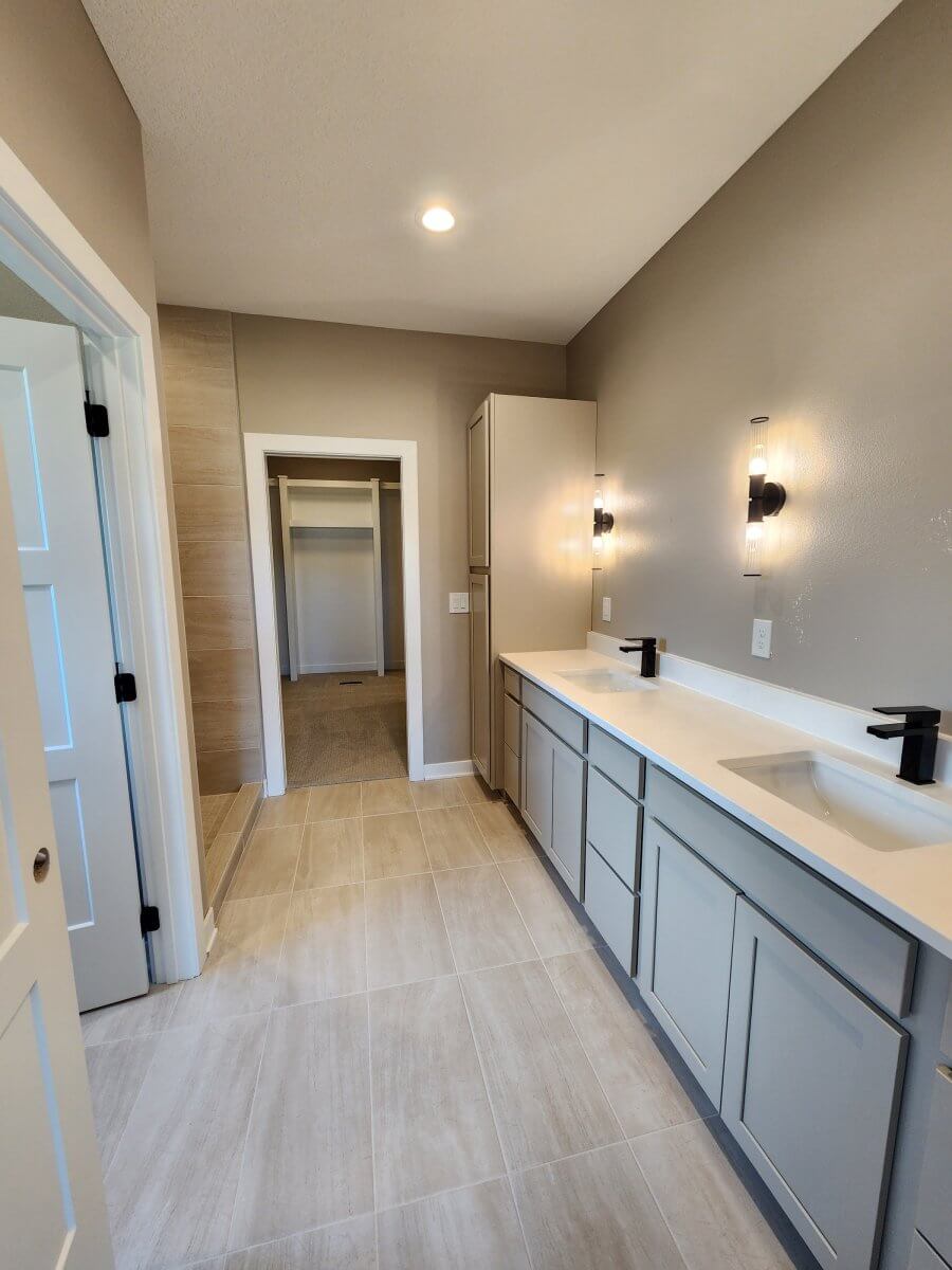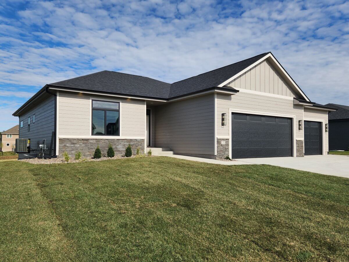 Welcome to VanDerKamp Home Builders’ amazing ranch plan, the Deer Creek. Pulling together several of the most popular features from other VanDerKamp plans, you are going to fall in love! With 9′ ceilings throughout, the kitchen features stained soft-close cabinets and drawers, large island, quartz countertops, backslash, under-cabinet lighting & walk-in pantry w/ custom shelving. Offset dining area w/ plenty of space & windows for natural lighting. Great room features large windows, electric fireplace & floating shelves. Primary bathroom has dual vanities, tiled shower, separate toilet room, walk-in closet with custom built-in shelving & easy access to the laundry room with sink and folding counter off the garage entry. Lower level features a recreational room great for entertaining, wet bar with a daylight window, 2 large bedrooms with walk-in closets and bathroom. Covered maintenance-free deck, irrigation, sodded yard & passive radon system. Garage has 1,076 SF with a 25′ X 24′ main stall and 14′ X 34′ third stall.